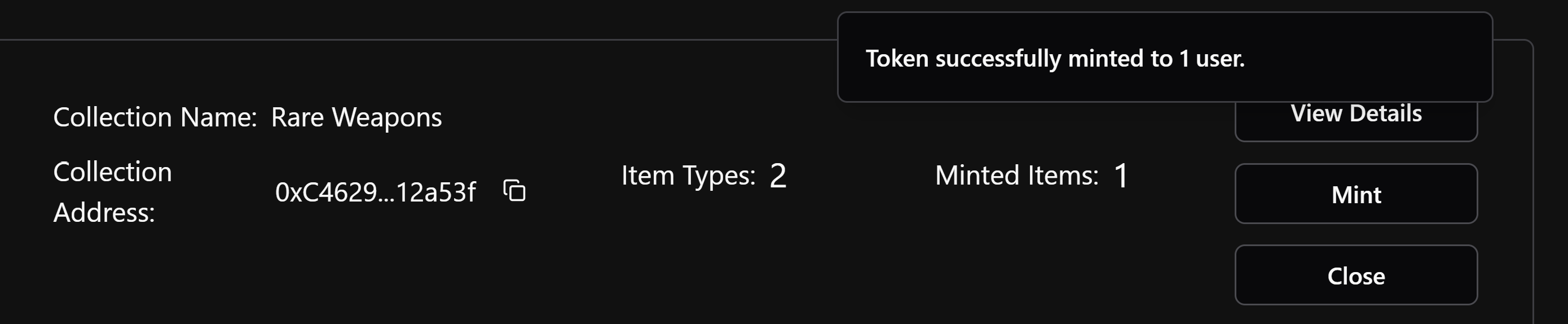 You should then get a notification that the collectible has successfully been minted, and see the "Minted Items" number increase by one.